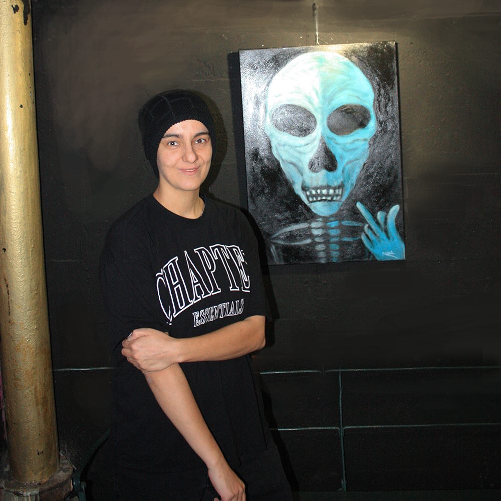Zu der Zeit habe ich in Hamburg gewohnt und Kommunikationsdesign (ehemals Grafikdesign) studiert. Ich hatte gerade erst vor einigen Monaten angefangen mit Acryl auf Leinwand zu malen, als mich eine Freundin fragte, ob ich mit ihr ausstellen möchte. Sie bot ihre Handwerkskunst (ihren Schmuck) und ich meine Kunst an. Das war vom Transport in der U-Bahn, über erste Feedbacks von Interessent*innen, bis hin zu Interesse von Galeristen an dem Abend, alles mega spannend und aufregend für mich. Es war halt meine erste Ausstellung überhaupt, abgesehen davon, dass meine Werke oft in der Schule ausgestellt wurden, zu meiner Schulzeit. Ausgestellt habe ich damals Schmetterlinge, Totenschädel und einen weiblichen Akt.